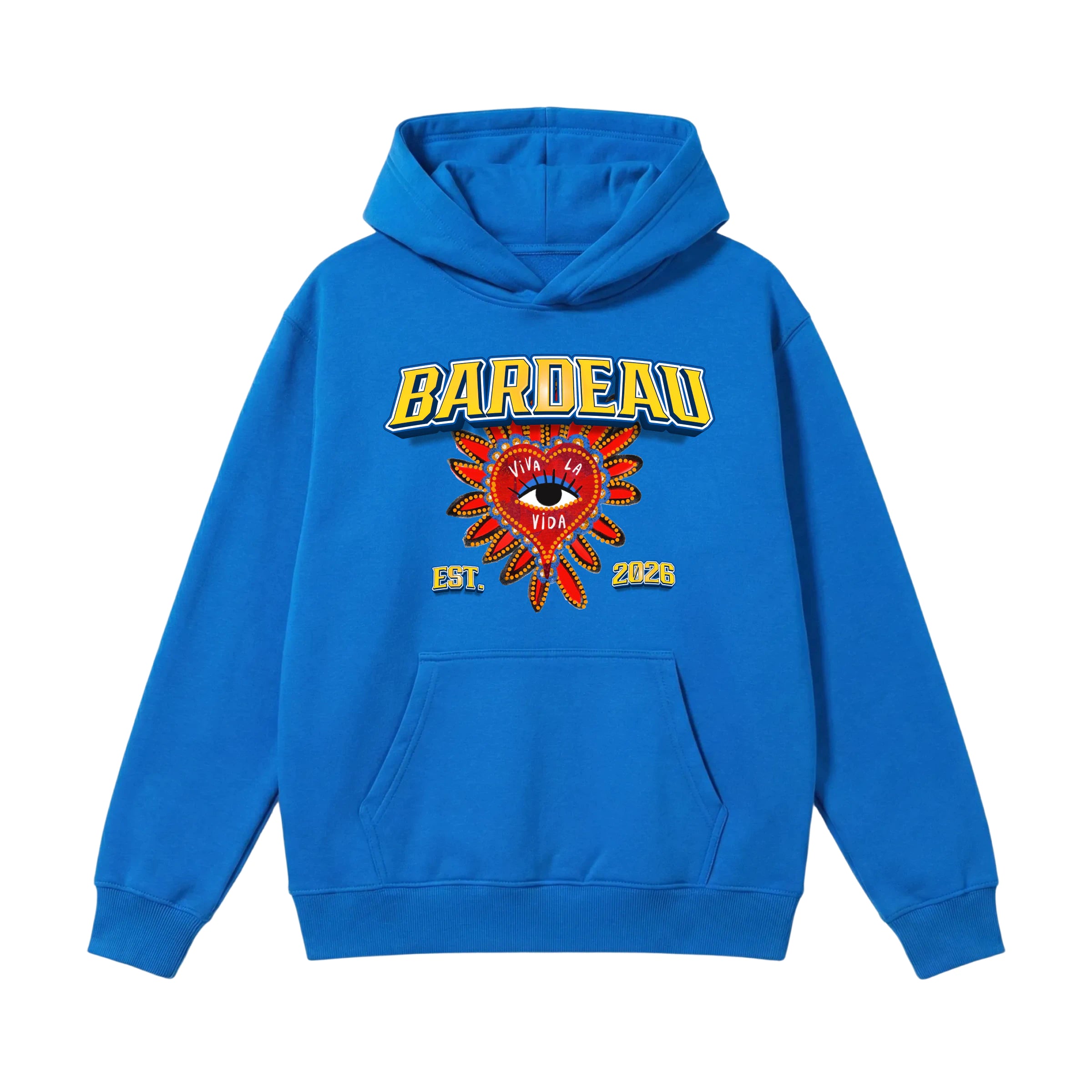 Deze navy Bardeau hoodie met Viva La Vida heart-artwork geeft elke look meteen meer karakter – bold genoeg om op te vallen, rustig genoeg om elke dag te dragen. Perfect met jeans, leren broek of een wide leg pantalon voor een luxe streetwear vibe.